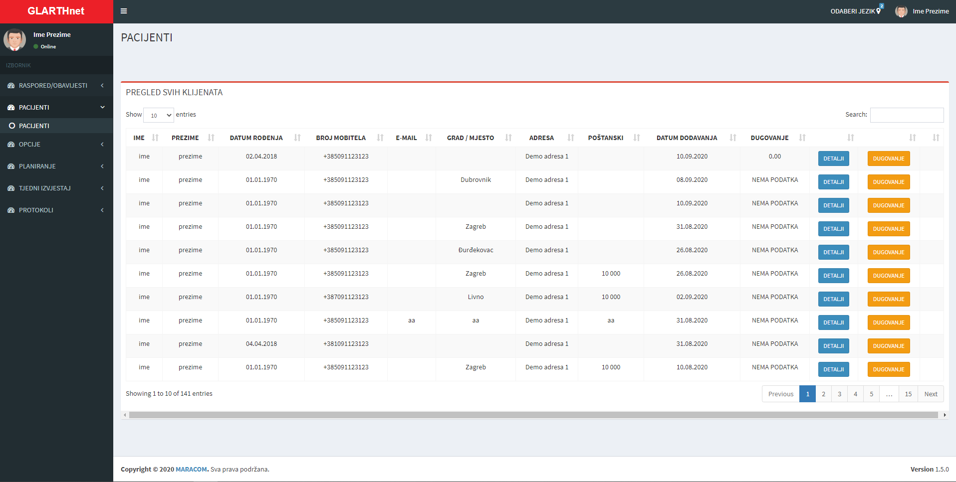 Jednostavan pregled svih pacijenata, kao i automatsko dodavanje pacijenta u tjedni izvještaj.